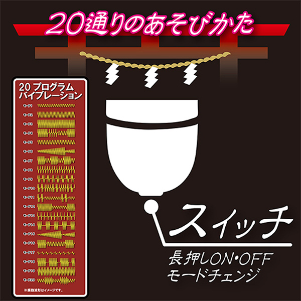 20通りのあそびかた 商品サイズ(mm) 全長165×最大径33 BOXSIZE(mm) W85×H208×D45 商品材質 ABS?シリコーン 商品重量(g) 153(本体101) 付属品 テスト電池:単3×1本(AA×1) トイカバー(※避妊具ではありません) 忍び寄る、快感呪縛 妖美な姿態?やさしいシリコーン素材?20モードの振動で 喘ぎ声が止まらない!?