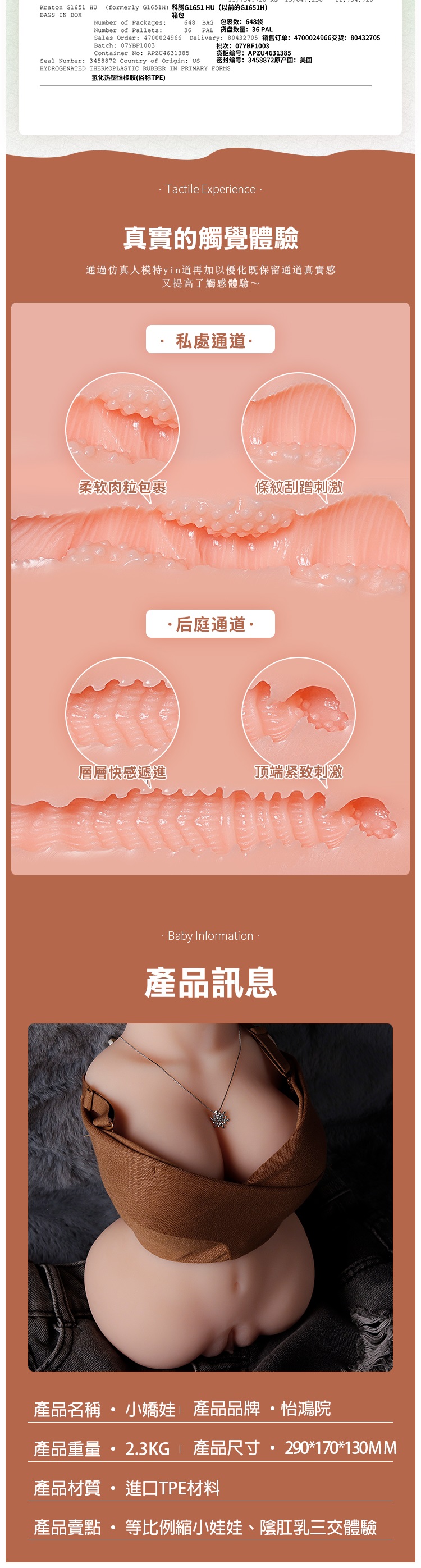 淫蕩小嬌娃.真人比例陰肛乳三交抽插體驗(帶骨架)2.3kg