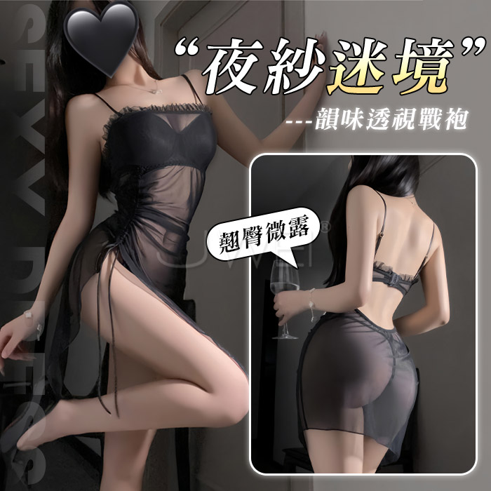 | 秘密情事.睫毛蕾絲誘惑吊帶睡衣(黑色)