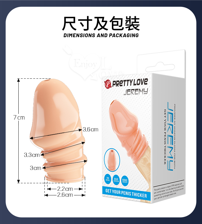 PRETTY LOVE 派蒂菈 ‧ JEREMY 傑里米 螺紋武裝強化龜頭套 - 頭部出精口設計﹝膚色﹞