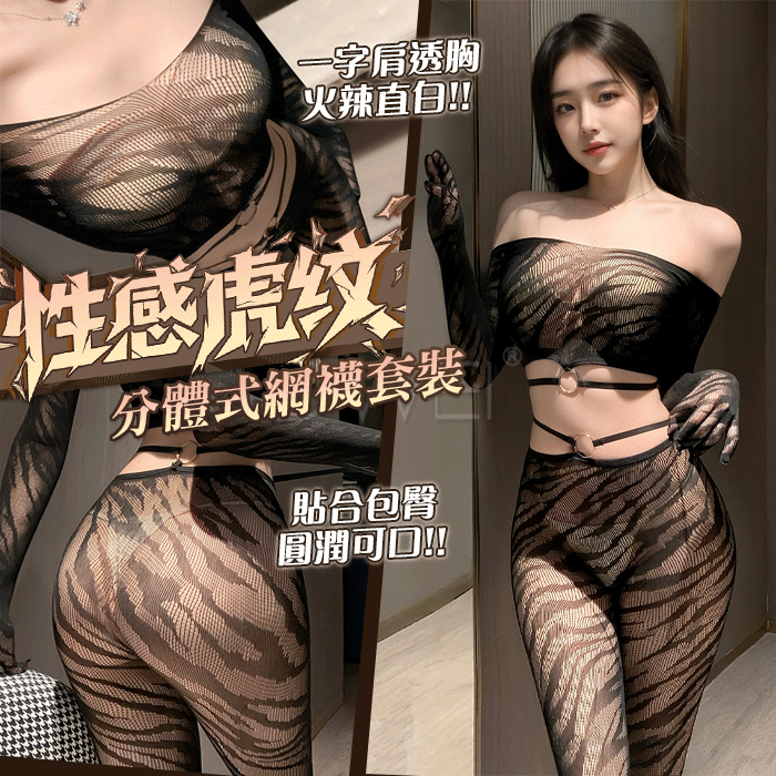 極性貓裝!性感小野貓木耳花邊平口網衣裙五件式套裝