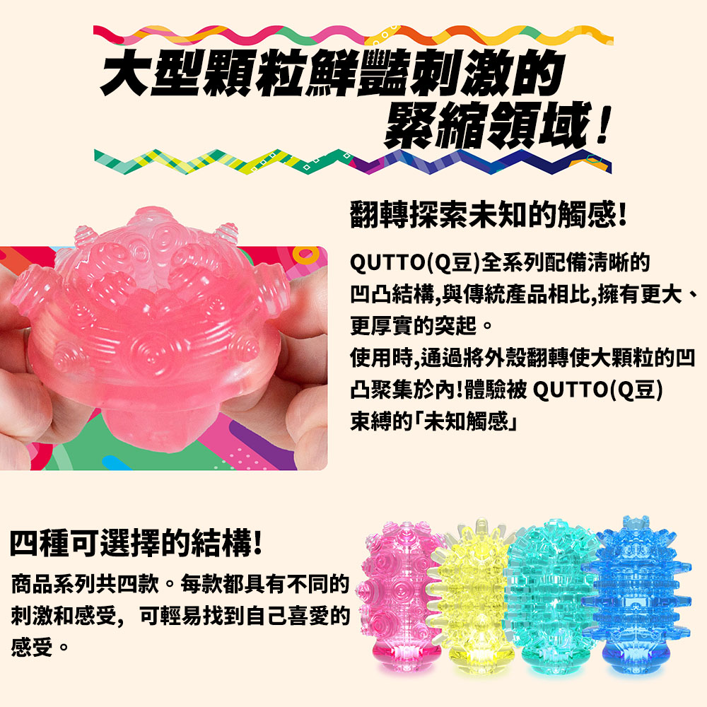 使用時,通過將外殼翻轉使大顆粒的凹凸聚集於內!體驗被QUTTO(Q豆)束縛的「未知感觸」