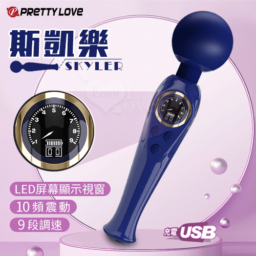 派蒂菈 ‧ SKYLER 斯凱樂 LED顯示10變頻X9段調速強震矽膠大頭AV棒 - 寶藍 (輕鬆GET敏感地帶 )
