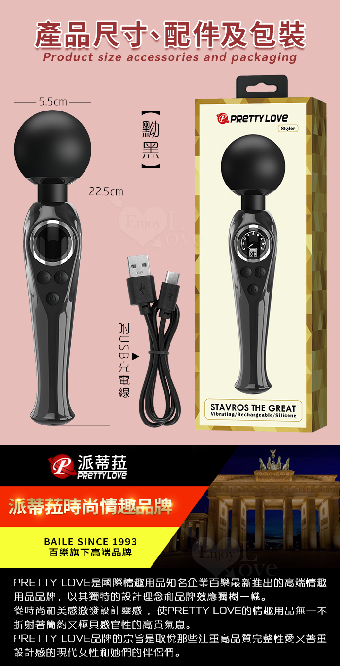 ►您現在的位置:首頁>派蒂菈 ‧ SKYLER 斯凱樂 LED顯示10變頻X9段調速強震矽膠大頭AV棒 - 黝黑 (輕鬆GET敏感地帶 )