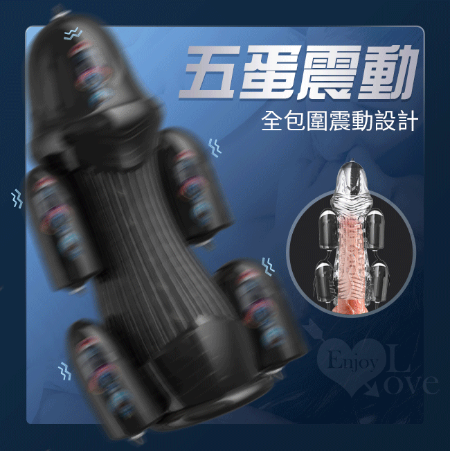 Kuba 久霸 ‧ 全方位龜頭訓練自慰器-陽具陰莖震顫按摩﹝一拖5震蛋+20高頻+顆粒刺激+USB快插即用﹞透明黑