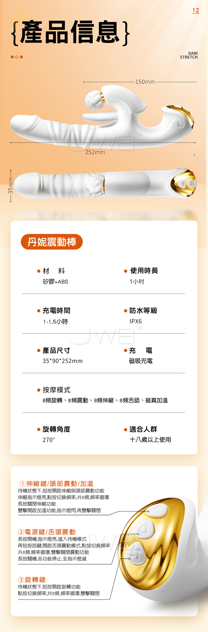 ►您現在的位置:首頁>丹妮.8段凸點旋轉揉豆長舌撩震+8段伸縮觸頂多功能智能加溫按摩棒