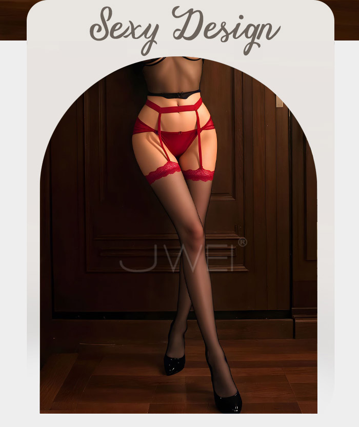 首頁>裸感啞光.唯美雕花一體式吊帶透膚啞光長筒絲襪【紅吊帶+黑絲襪】