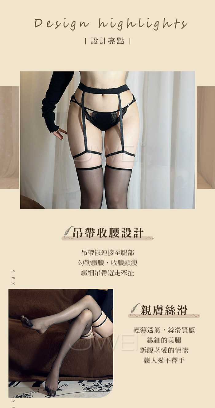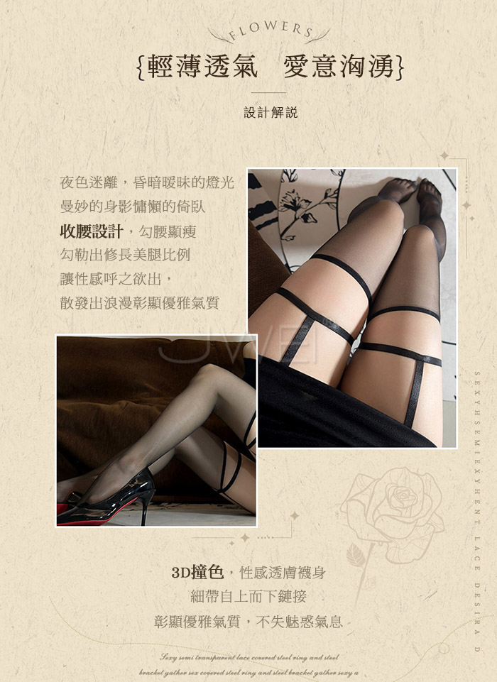 ■內容物:一體式吊帶絲襪*1 ■適穿尺寸:FREESIZE ■彈性:彈 ■未撐開平量尺寸正負誤差1~2cm,1吋=2.54cm ■注意事項:基於保障消費者個人衛生,此貼身衣物恕不接受退換貨。 (如為商品本身暇疵,接受七日內換貨,請勿試穿,謝謝您)