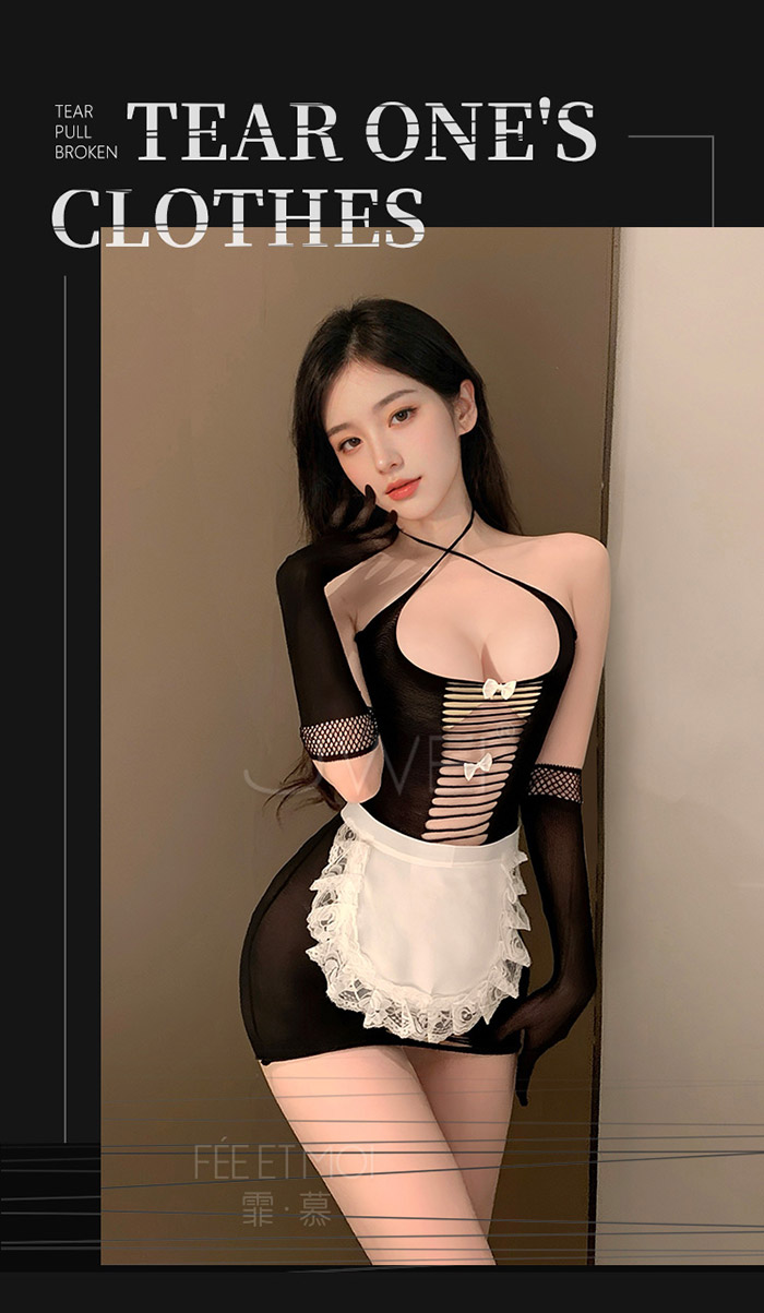 ►您現在的位置:首頁>嬌俏女僕.火辣條紋露胸可撕網衣女樸套裝-黑【連身網衣+圍裙+手套*2】