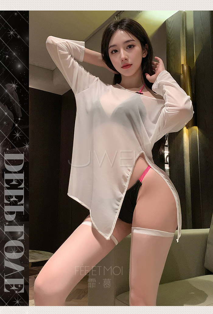 職場佳麗.撩撥暗慾腰腹雙邊蕾絲秘書套裝【上衣+工牌+包臀裙】