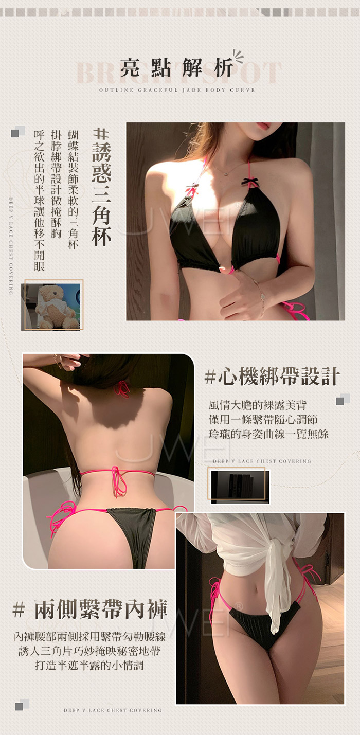 撞色誘惑.性感辣妹撞色三點式綁帶比基尼【胸罩+內褲】