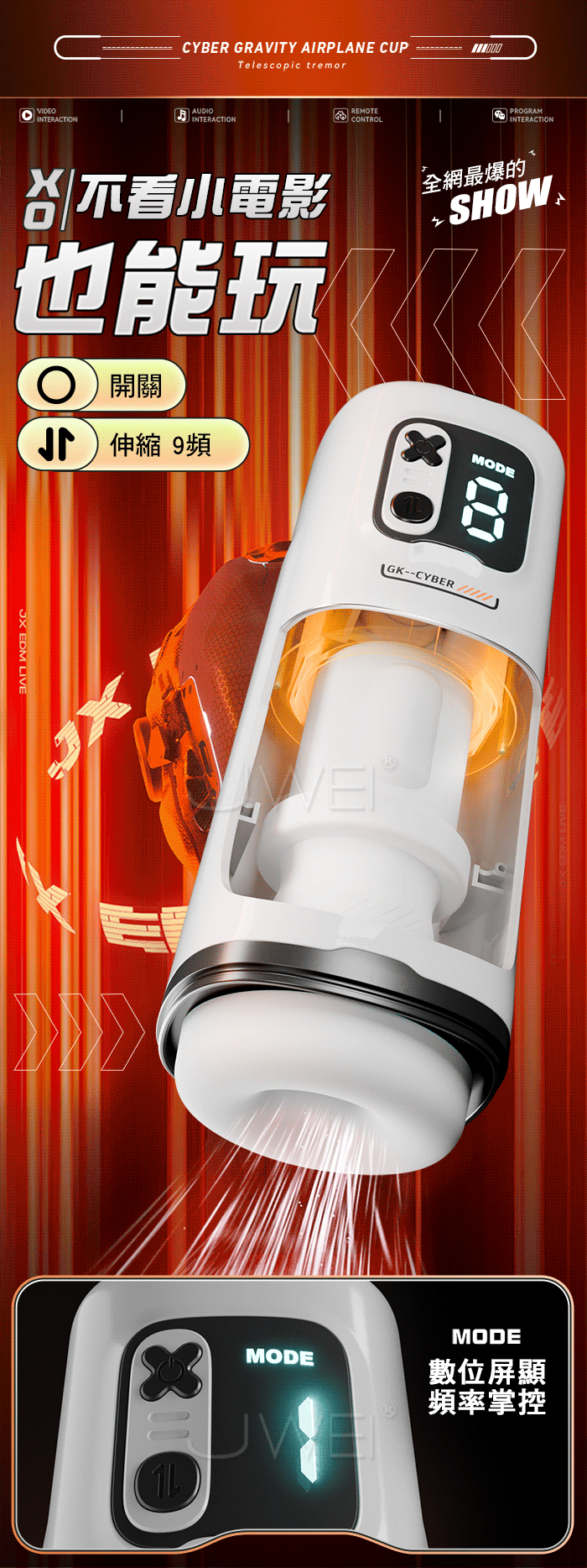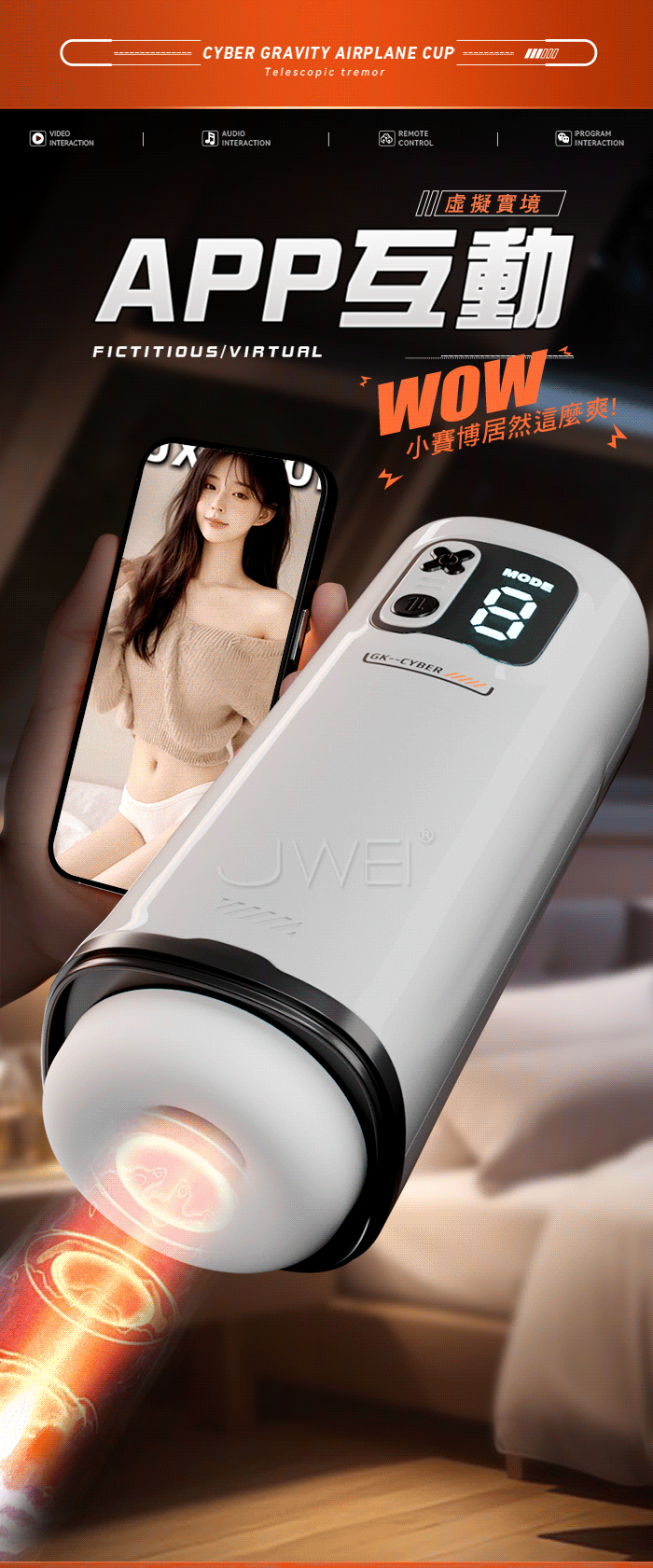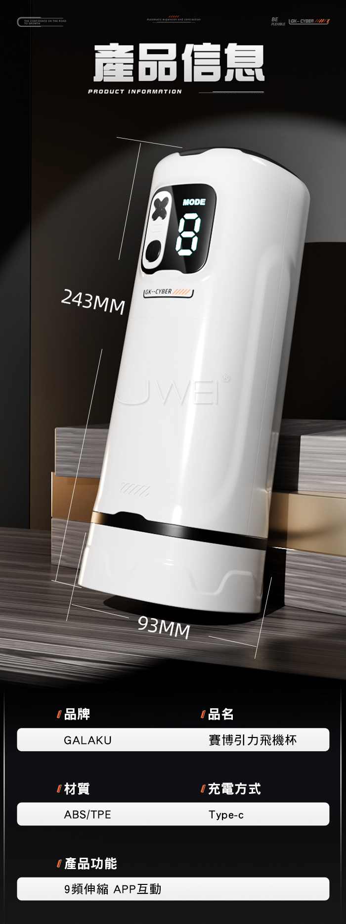 GALAKU.賽博引力 9頻伸縮爆榨 波感通道漩渦虹吸收緊 APP操控智能飛機杯