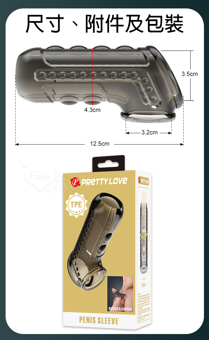 派蒂菈 ‧ Farrell 法雷爾 3開口精子發射台 老二增粗束精延時助性水晶加強套﹝透明黑﹞