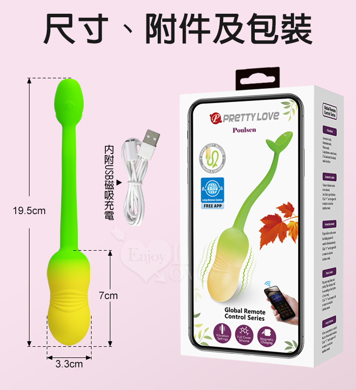 派蒂菈 ‧ Poulsen 波爾森 全球APP互動遙控 隱形穿戴按摩器-萌芽漸層黃綠夢幻色調﹝入體一機雙控/12頻強震/親膚矽膠/磁吸充電﹞