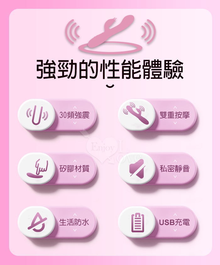 PRETTY LOVE 派蒂菈 ‧ 頑皮兔 內外雙重30頻雙頭同震按摩棒-充電款
