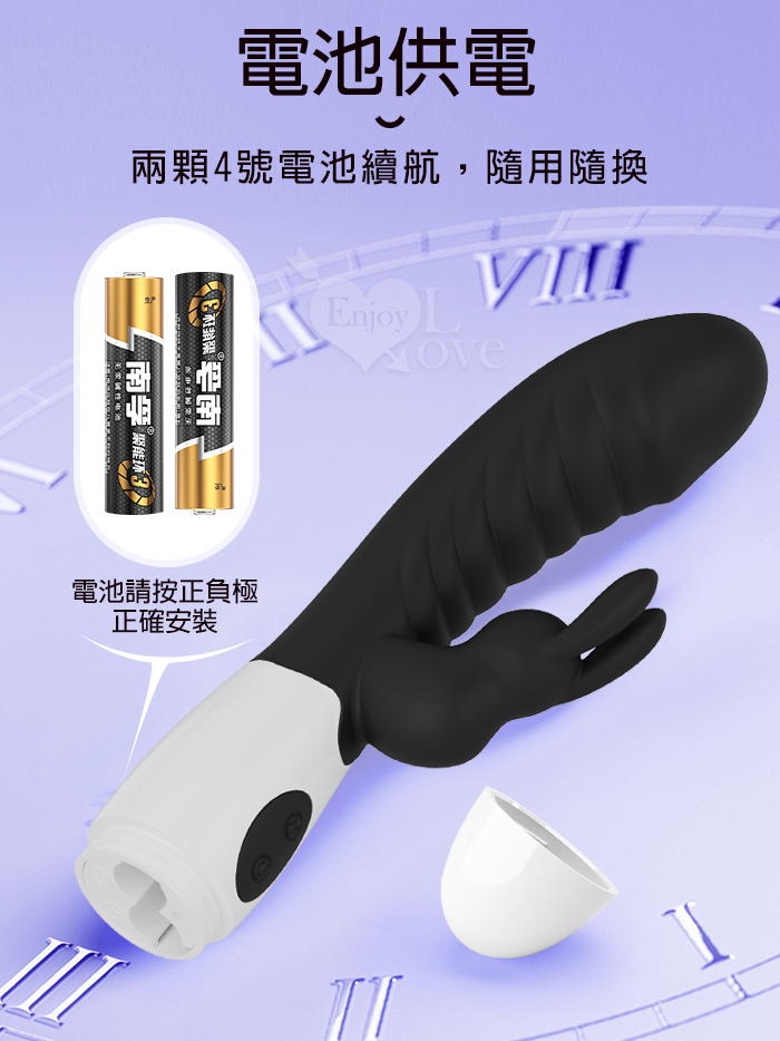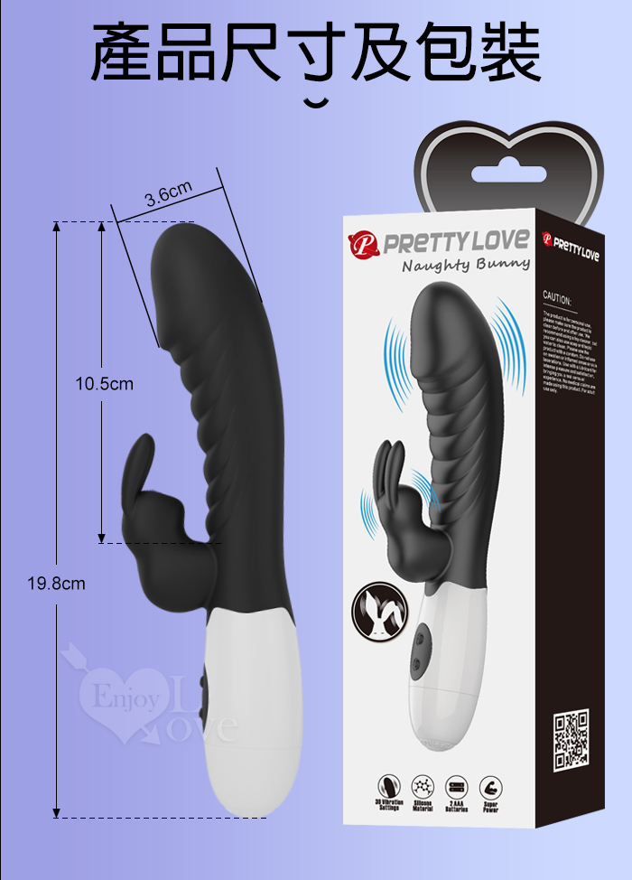 PRETTY LOVE 派蒂菈 ‧ 頑皮兔 內外雙重30頻雙頭同震按摩棒-黝黑