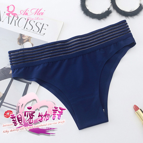 ►您現在的位置:首頁>親密物語!絲滑冰絲條紋褲頭低腰三角褲﹝深藍﹞