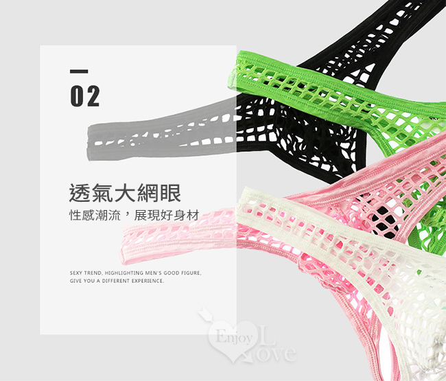 | 《 Enjoy Love 》性感半透大網孔男士丁字褲 - 粉﹝S﹞