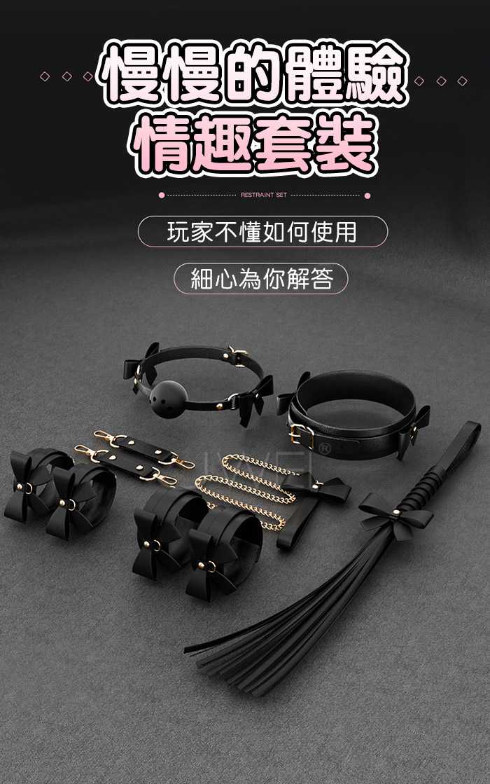 ►您現在的位置:首頁>SM束縛套裝. 黑色情趣 蝴蝶結皮革捆綁束縛7件組套裝