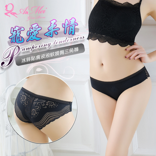 寵愛柔情!冰絲貼膚波浪紋提臀低腰三角褲﹝黑﹞