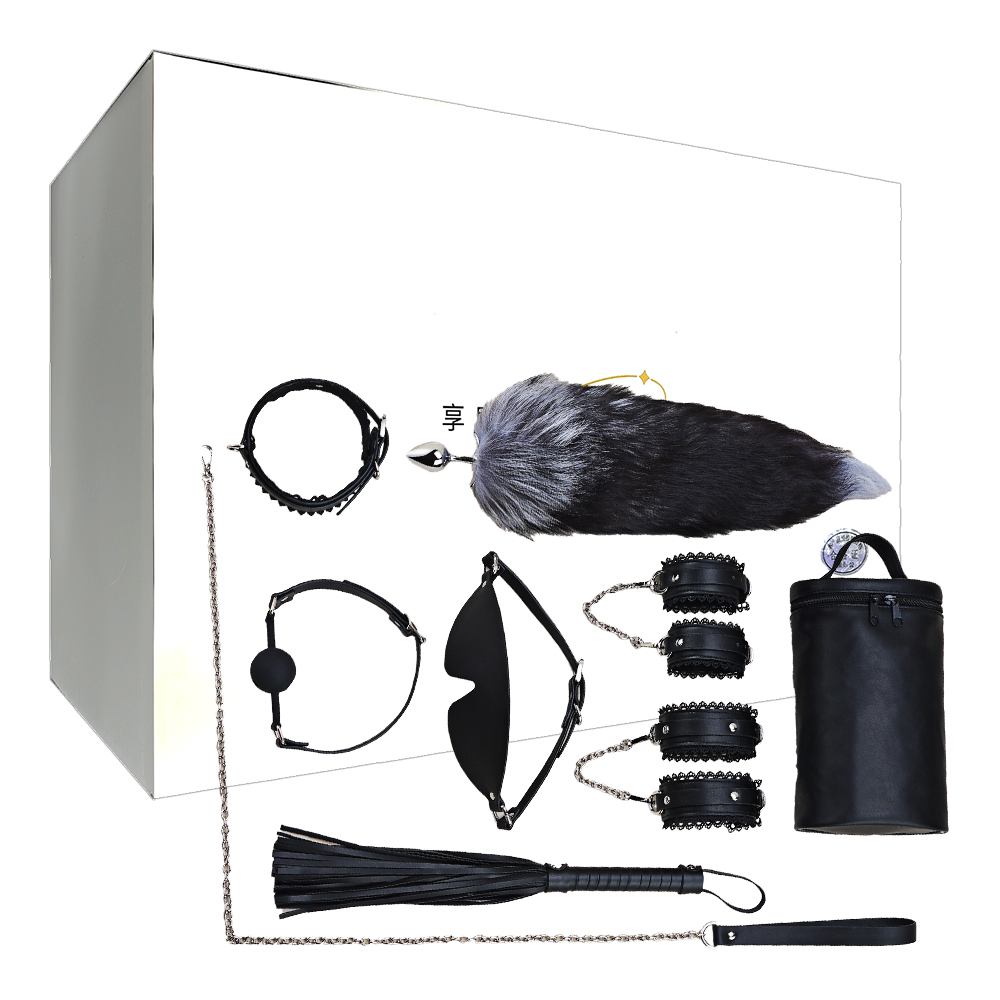內容物:肛塞尾巴x1、項圈x1、牽引繩x1、口球x1、眼罩x1、皮鞭x1、