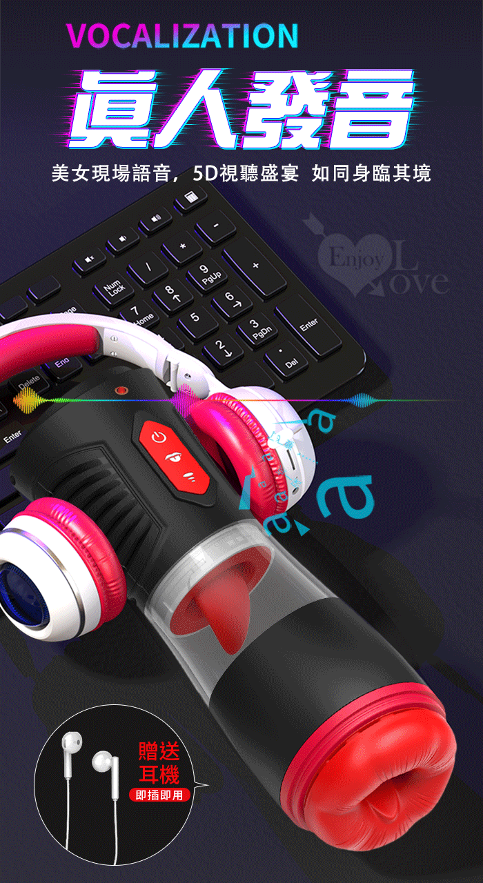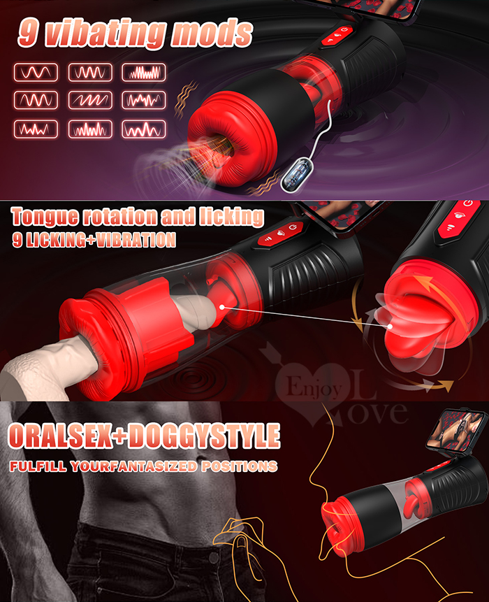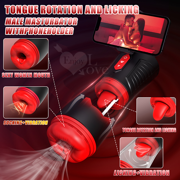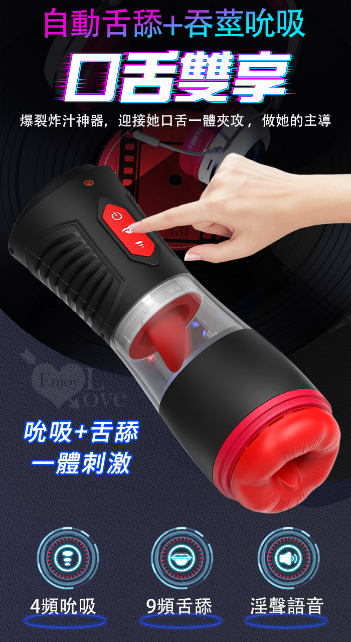Hgod 007-II ‧ AI新智能自動舌舔+吞莖吮吸快感電動飛機杯﹝4頻收縮吸吮X9頻舌擺舔+淫聲耳機+手機架﹞