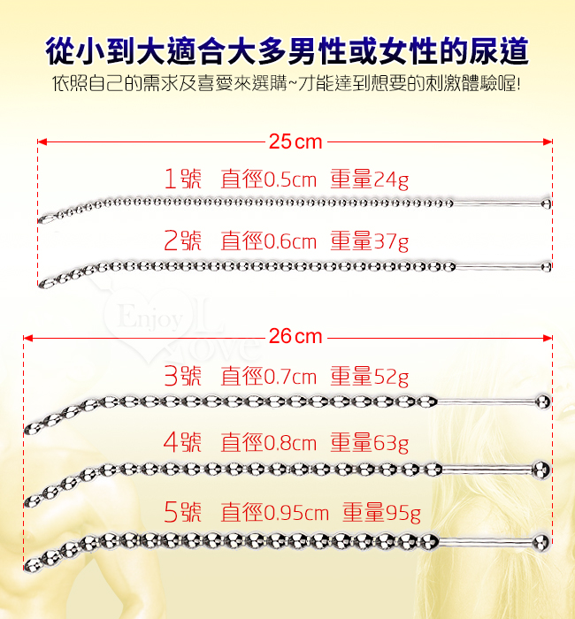 另類玩虐刺激 ‧ 不銹鋼尿道馬眼連珠彎弧 擴張入侵長棒 - 3號﹝直徑0.7公分/全長26公分﹞