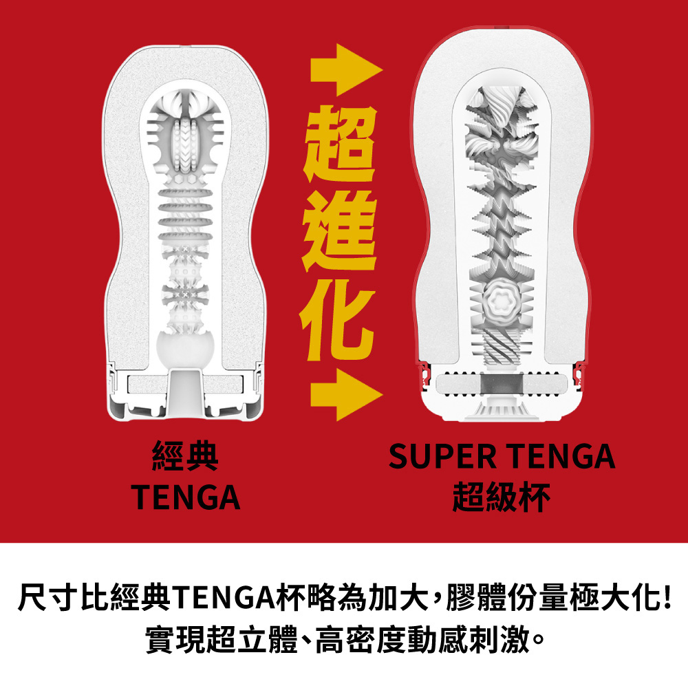 經典TENGA升級版,尺寸略大、膠體份量增加20%,擁有超立體、高密度內部紋路設計,
