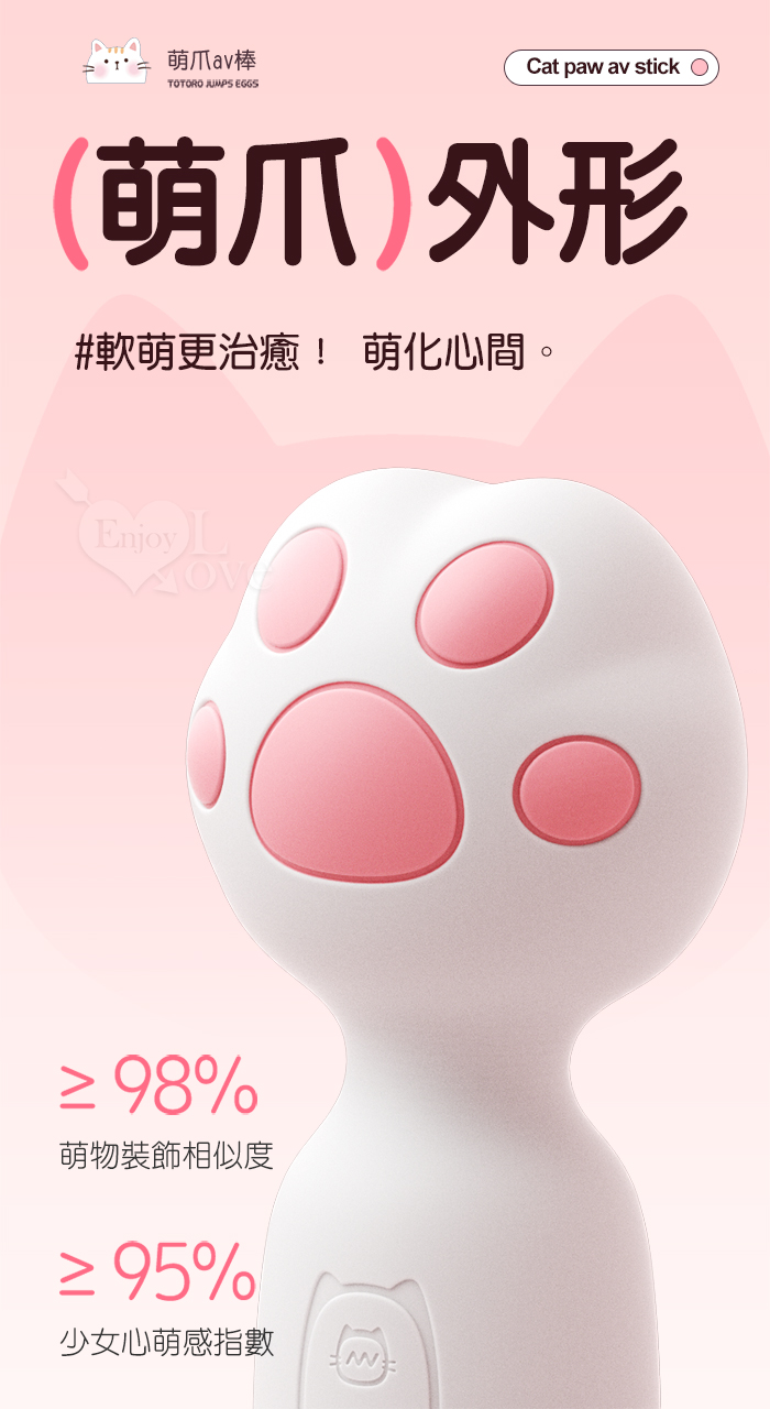 ROSELEX 萌爪AV棒 ‧ 可愛小貓爪加溫震動棒-10頻震動陰蒂刺激調情自慰 - 粉