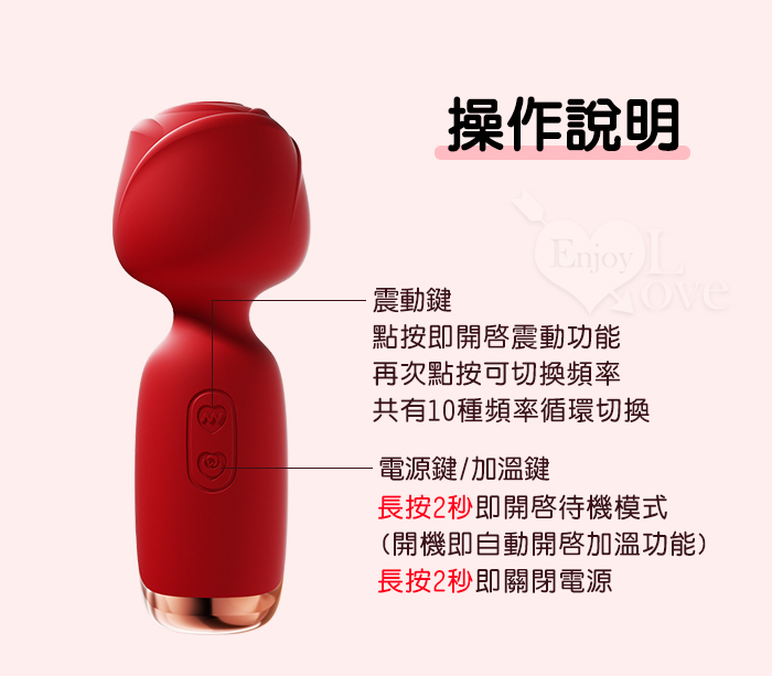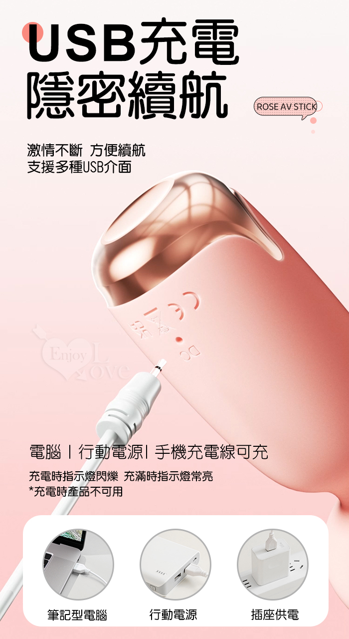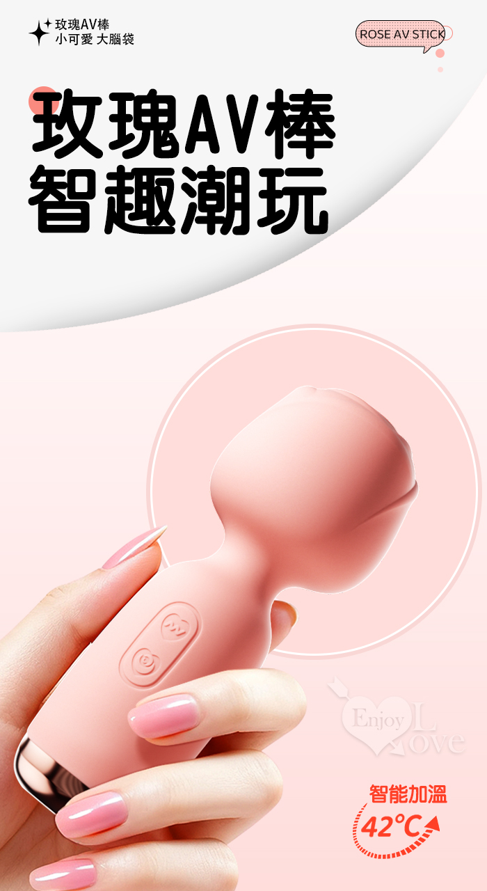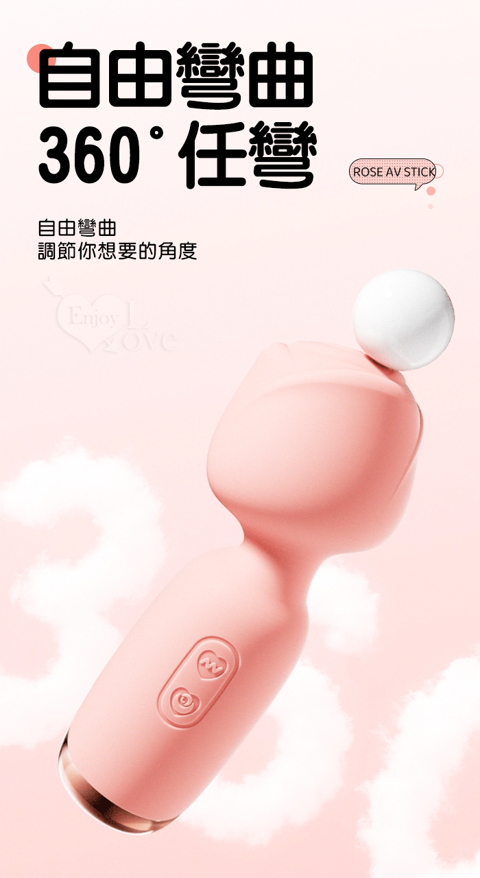 ROSELEX 玫瑰AV棒 ‧ 智趣潮玩10頻震撼衝擊 小巧随身360度彎曲加溫AV棒 - 粉