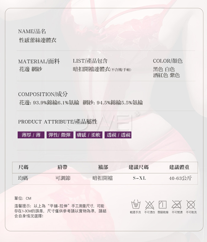 2.基於保障消費者個人衛生,情趣衣物類恕不接受退換貨,如為商品本身暇疵,接受三日內換貨,請勿試穿。
