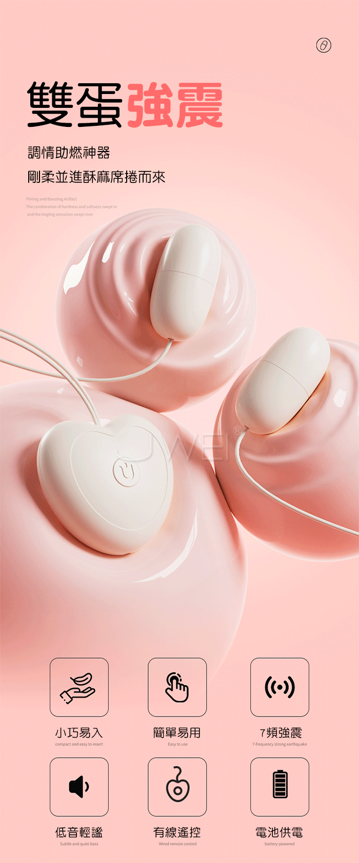| 悅心.7段強震 助燃神器一鍵引爆 有線遙控變頻跳蛋【雙跳蛋】
