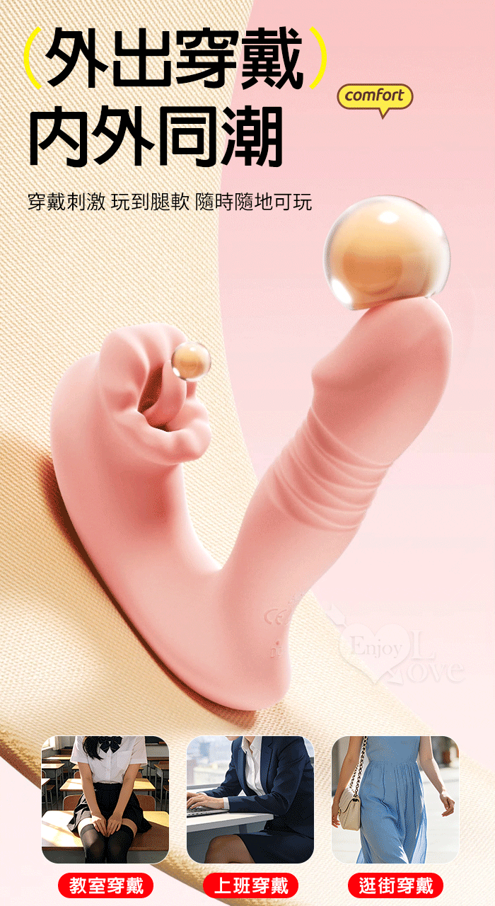 | ROSELEX 唇逗 10頻雙馬達內外雙激震舌舔擊貼合穿戴按摩器 - 可手機APP遙控﹝具兩種操控模式﹞粉