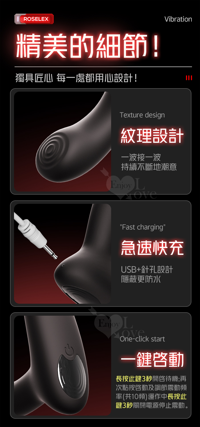 | ROSELEX 頂腺出液 10段變頻雙環鎖精激震精前列腺後庭按摩器/可手機APP遙控﹝具兩種操控模式﹞黑