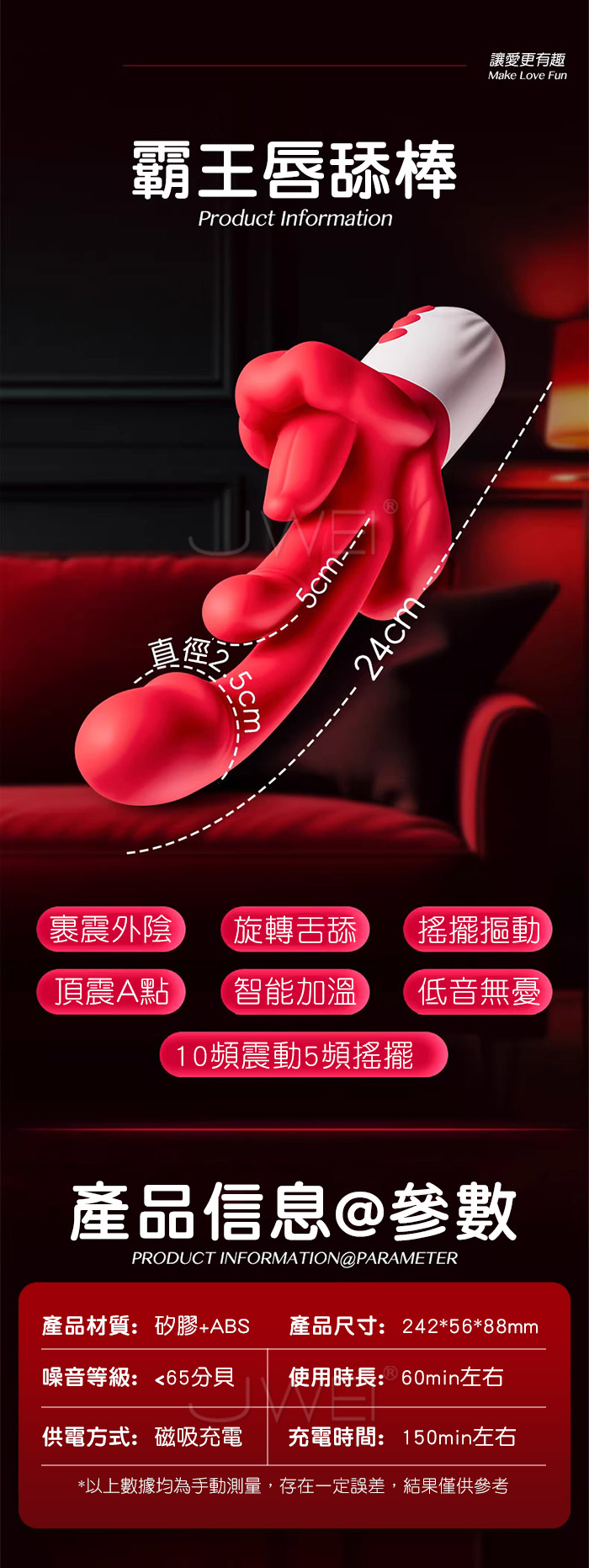 | 霸王唇.5x10頻旋轉舌舔搖擺撩G 頂震觸芯 三點刺激仿真體熱按摩棒