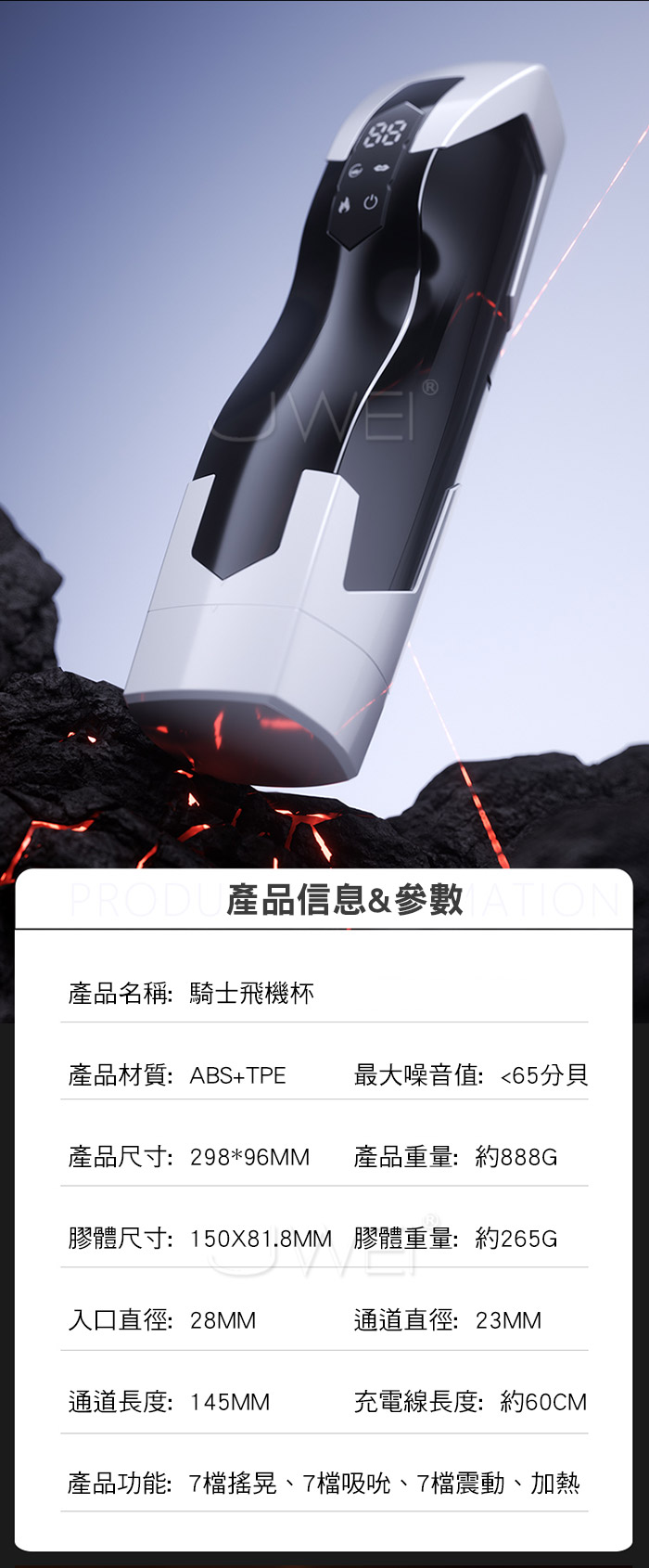 騎士.7x7x7段 搖晃吮吸激震 APP遠控智能加溫飛機杯