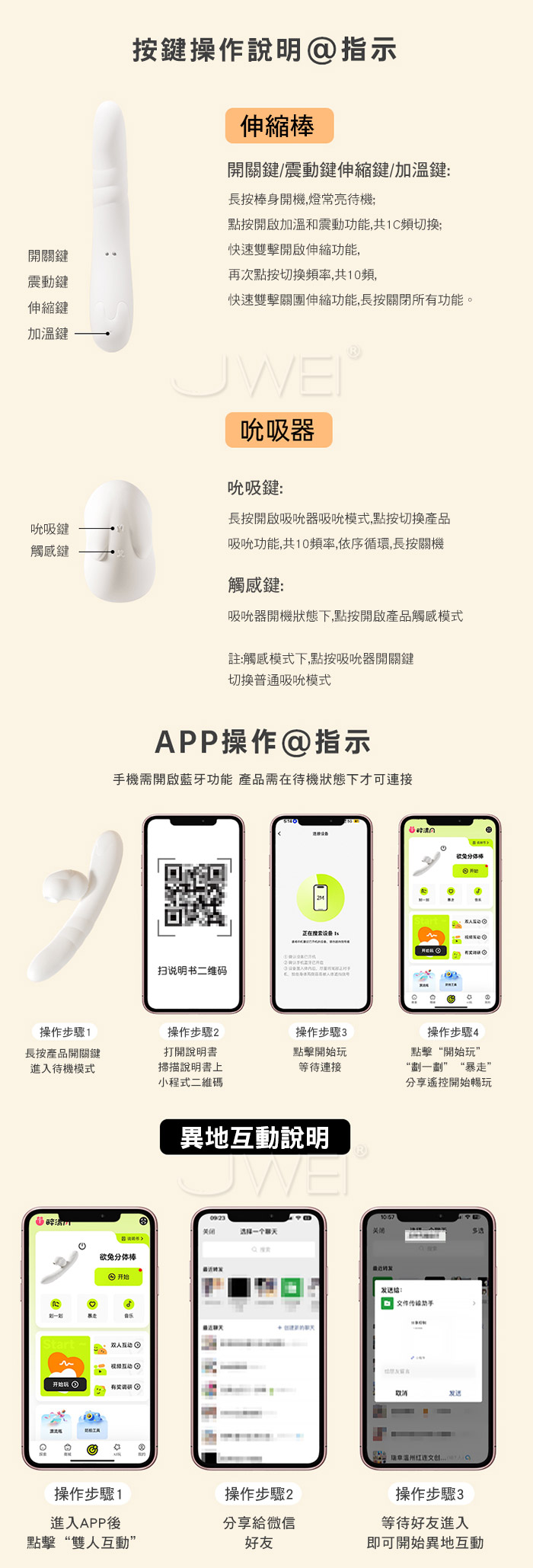 ■功能: 10頻震動、10頻吮吸、10頻伸縮、APP智控、加溫