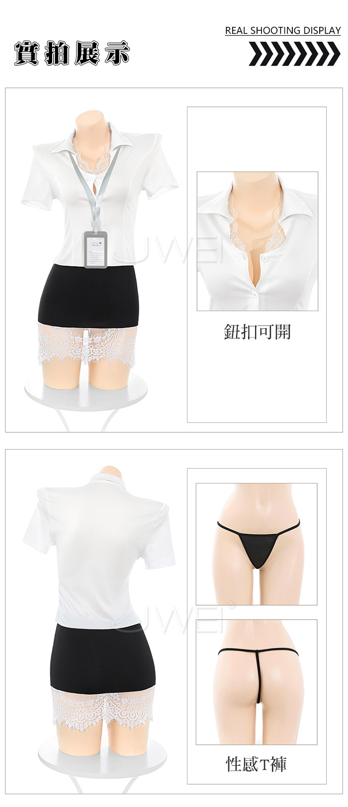 ►您現在的位置:首頁>秘書情事.深V露溝睫毛蕾絲包臀裙襬秘書套裝【上衣+工牌+包臀裙+T褲】