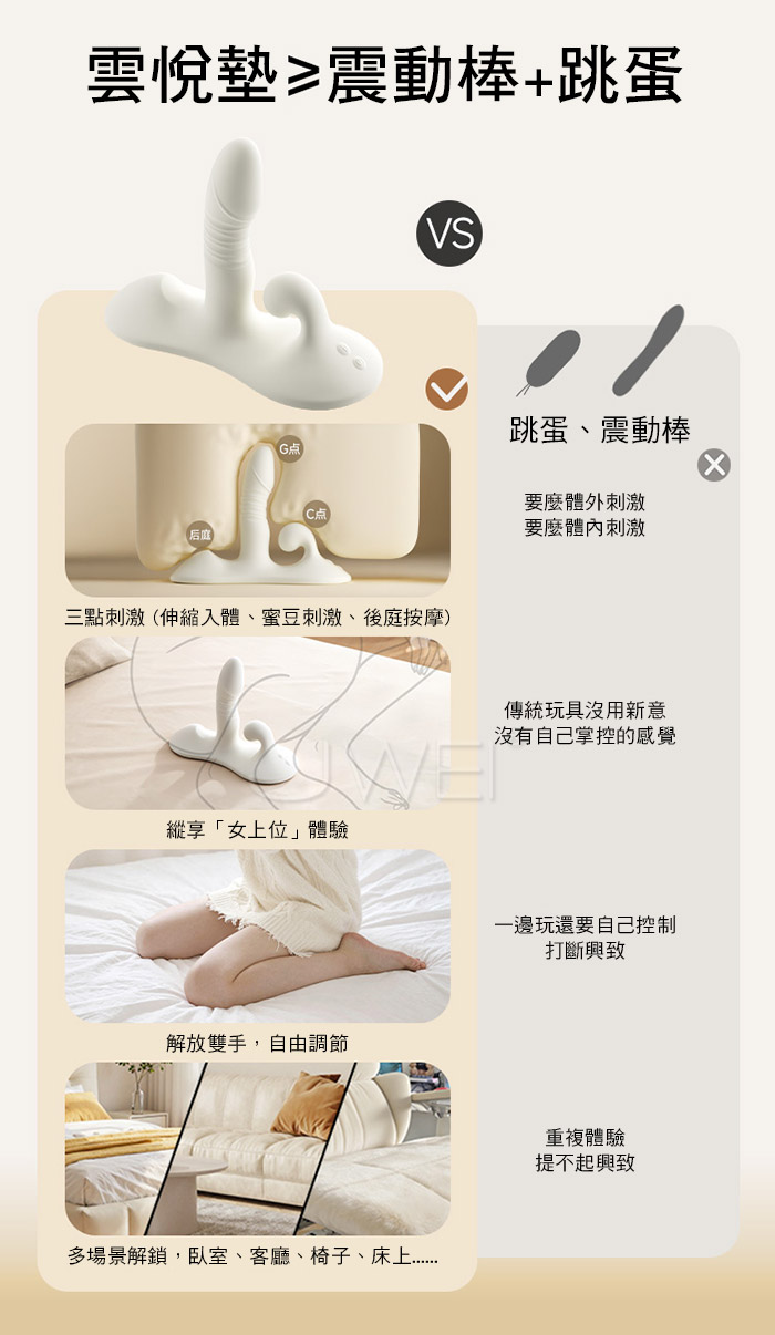 | 雲悅墊.9段變頻激顫伸縮衝撞 無線遙控坐騎式吸盤按摩墊