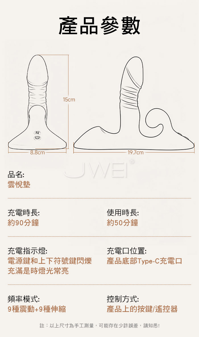 ■功能:9頻震動、9種伸縮、無線遙控