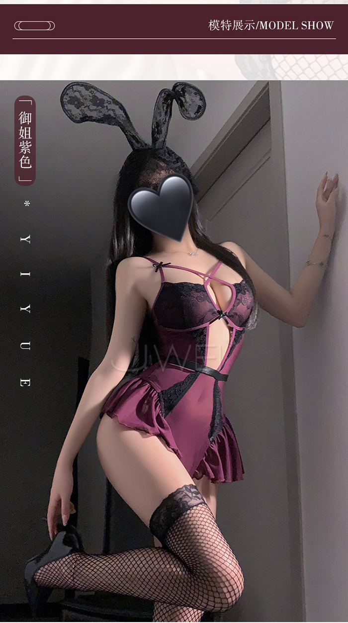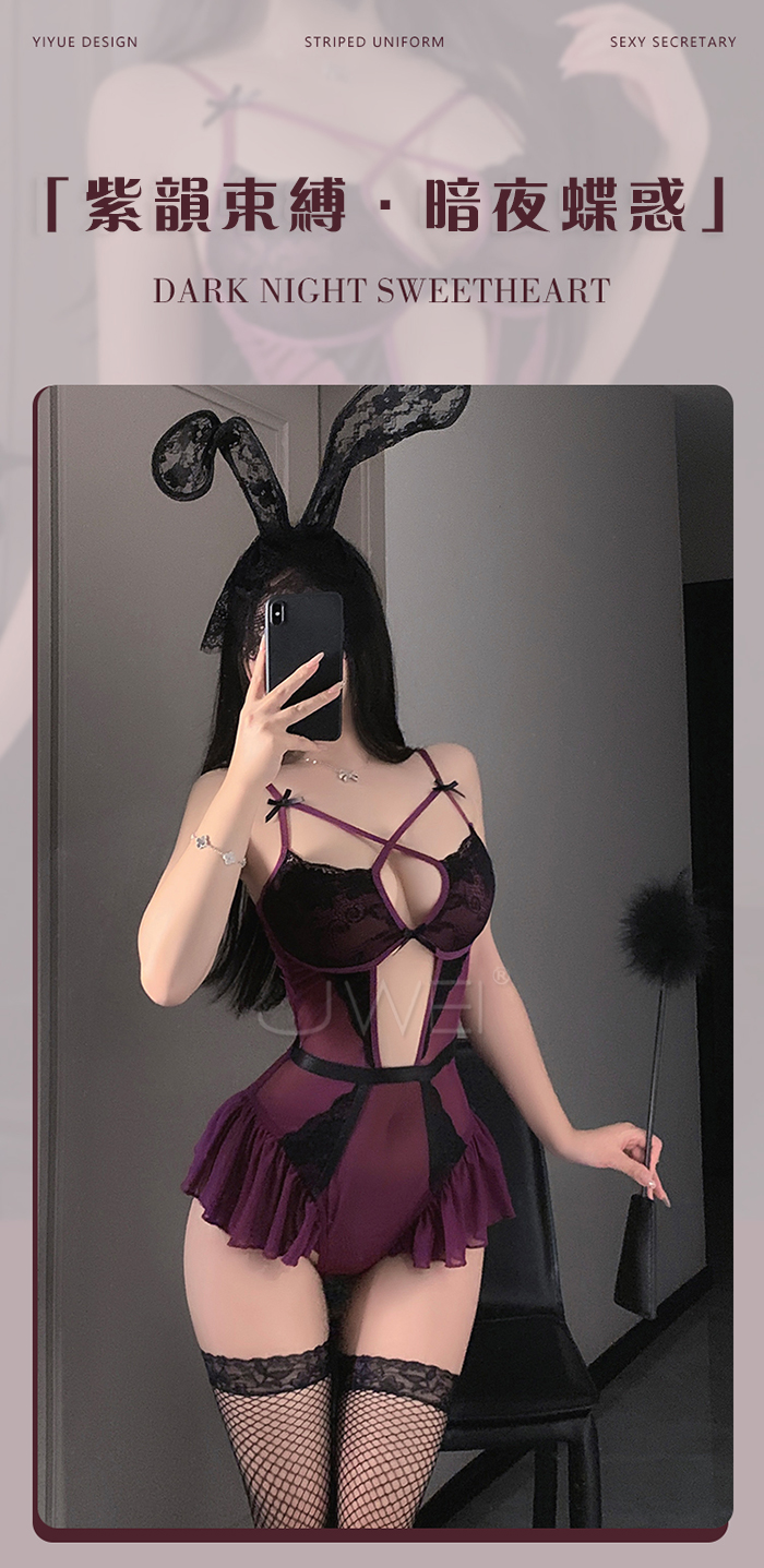 | 紫韻蝶惑.純欲交叉挖胸蕾絲雙層包邊小裙襬連體衣