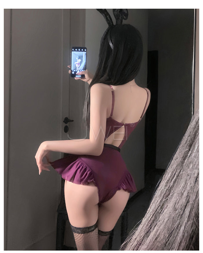 ►您現在的位置:首頁>紫韻蝶惑.純欲交叉挖胸蕾絲雙層包邊小裙襬連體衣