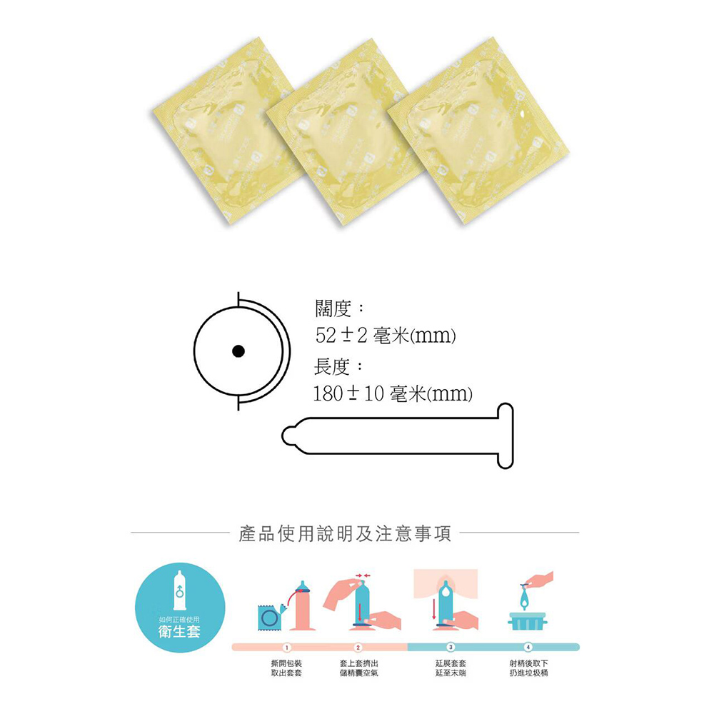 ◎每個保險套只能使用一次。使用後的保險套請綁緊並丟棄。