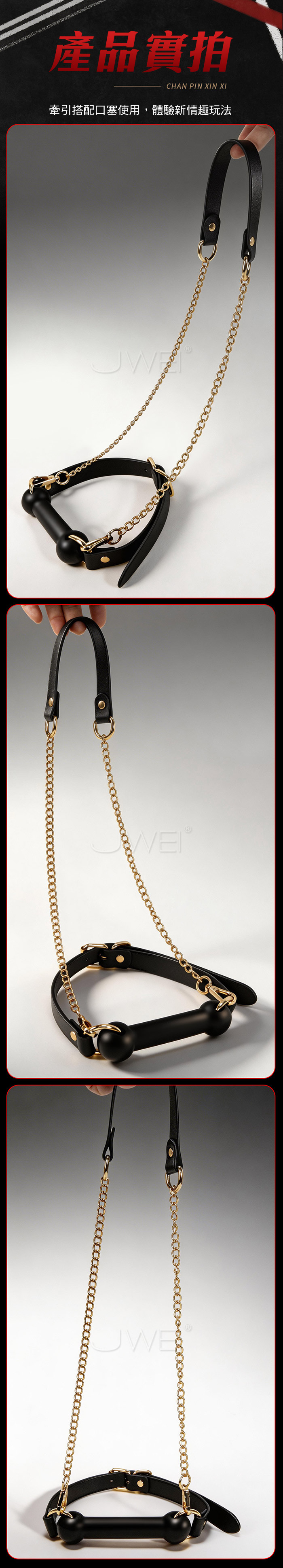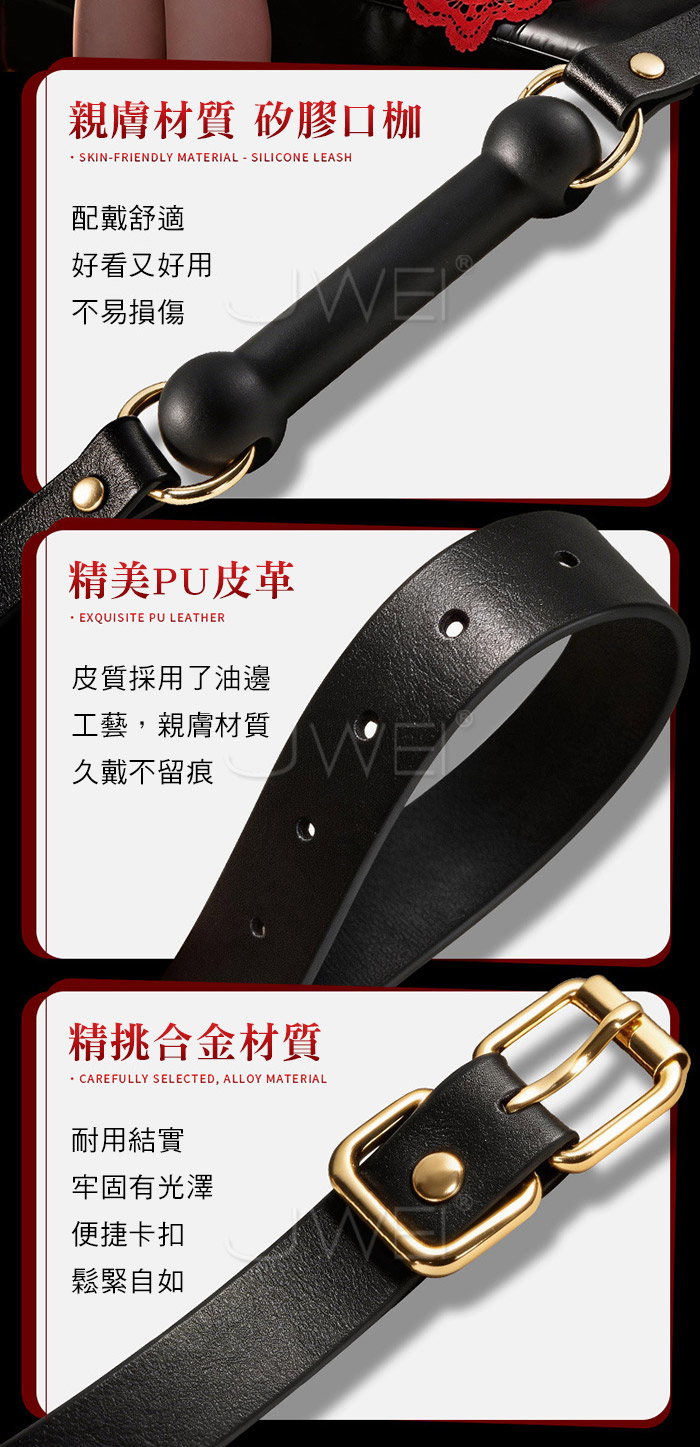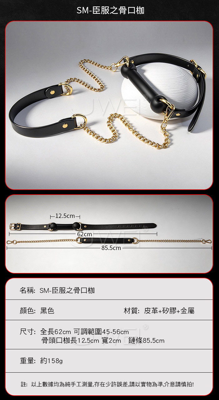 臣服之骨口枷掌控,從唇齒之間開始 牽引口塞,牽引搭配口塞使用,體驗新情趣玩法 項圈固定帶,多孔位調節,總有適合的尺寸 柔軟矽膠,觸感柔軟 配戴舒適 產品規格 ■尺寸:大小詳如圖片標示 ■材質:皮革+矽膠+合金 ■SM用品屬於特殊情趣用品,需在雙方清醒自願的情況下使用, 該物品僅作為情趣用品使用,使用時應注意安全!!